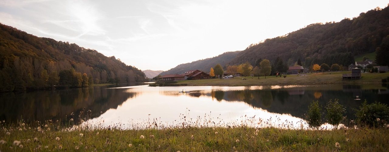 L’étape commence par une montée progressive vers le lac Chambon, vaste étendue d’eau née de l’effondrement d’une coulée de lave. Ses rives herbeuses invitent à une pause contemplative. En toile de fond, les ruines imposantes du château de Murol dominent la vallée depuis un piton basaltique.